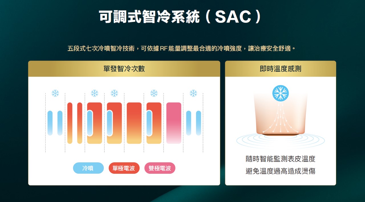 與傳統接觸式冷卻不同:SAC 冷卻曲線平穩,不會忽冷忽熱,大幅降低刺激與不適感。