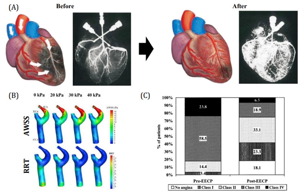 MUST-EECP 試驗 (Multicenter Study of EECP) 是 EECP 領域最關鍵的雙盲隨機對照研究。證實 EECP 能顯著增加穩定型心絞痛患者的運動耐受力,並延遲心肌缺氧(ST段下移)的發生時間。