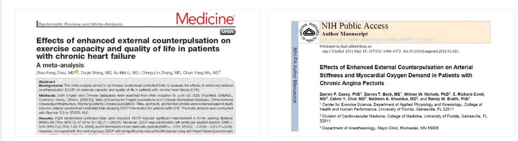 EECP並非橫空出世,而是已經發展 30 年的成熟技術,下方多項臨床研究,已證明可改善 ─